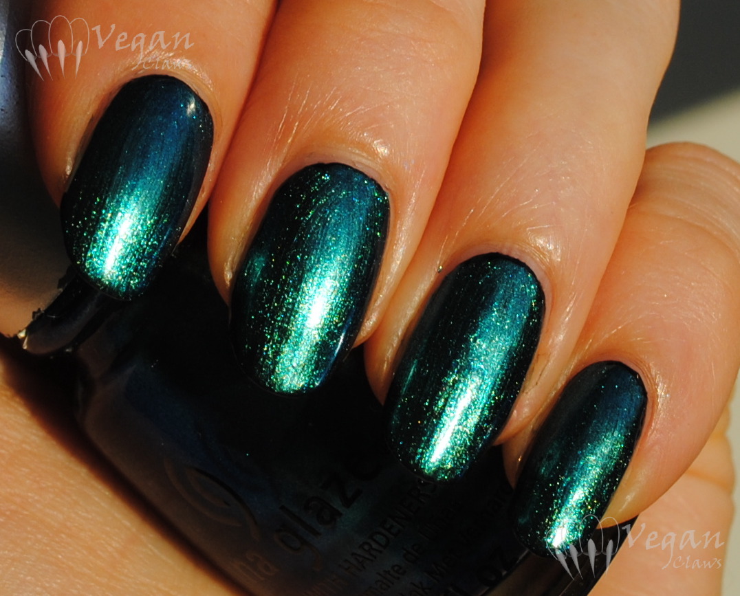 Rich Plum is a rich shimmery purple. This one made me realize that these polishes don’t have mixing balls, as the shimmer was uneven in my bottle and I had to shake it quite a bit to get it distributed. Shown are two coats; this one can show very slightly visible brushstrokes and I recommend waiting a few minutes between coats to prevent dragging.