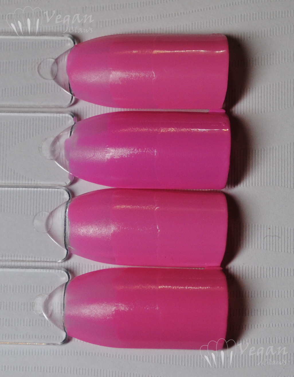 Next, Pink Crush. This is a bright fuchsia squishy-looking semi-jelly polish. The formula was not as runny as Sweet Pea, and this was two coats.