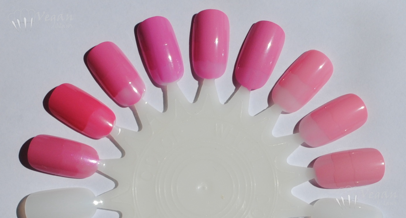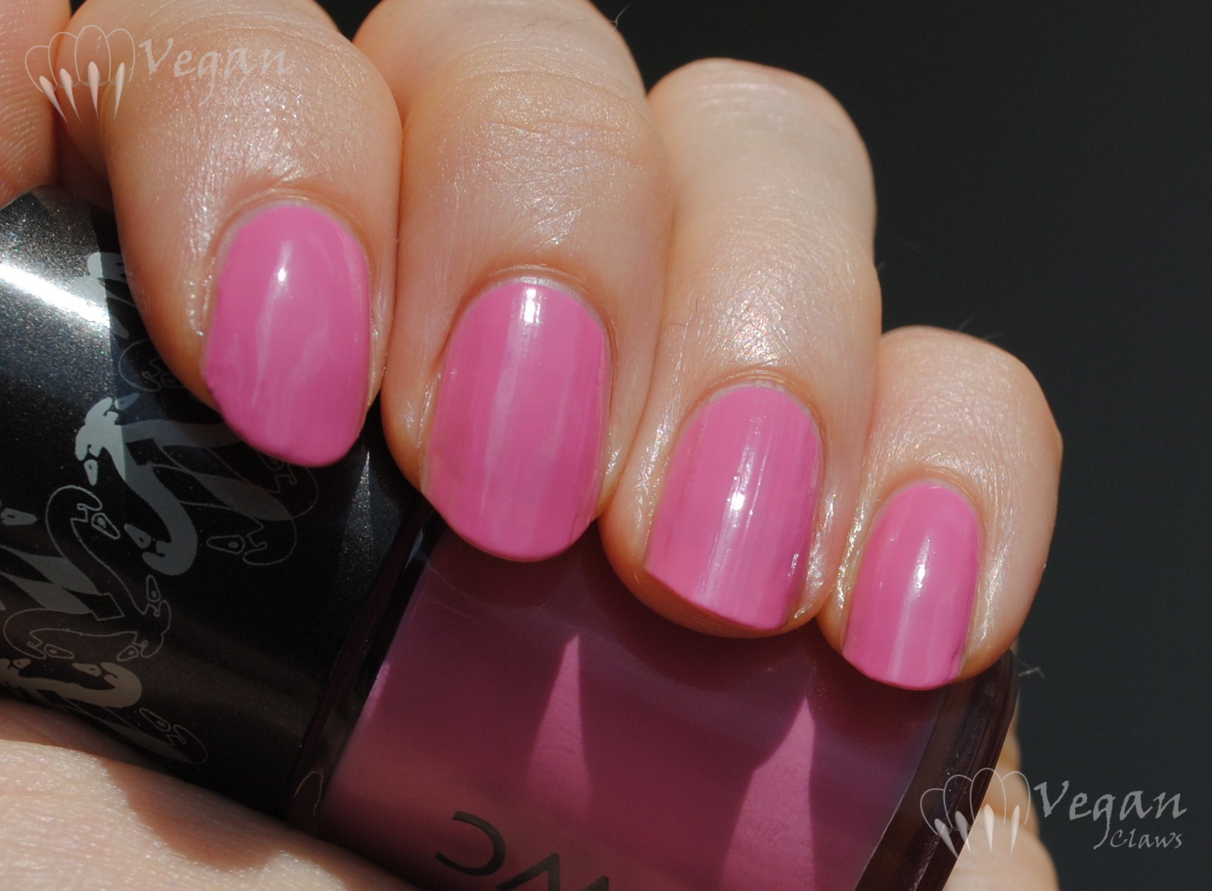 Beauty Without Cruelty was one of the first brands to produce entirely vegan cosmetics and today I have swatches of my Beauty Without Cruelty polishes to show you. I only have four of them, and it just so happens that three of them are pink. For each of them, I have two photos in the sun followed by one in the shade. I didn’t use any topcoat for these photos.