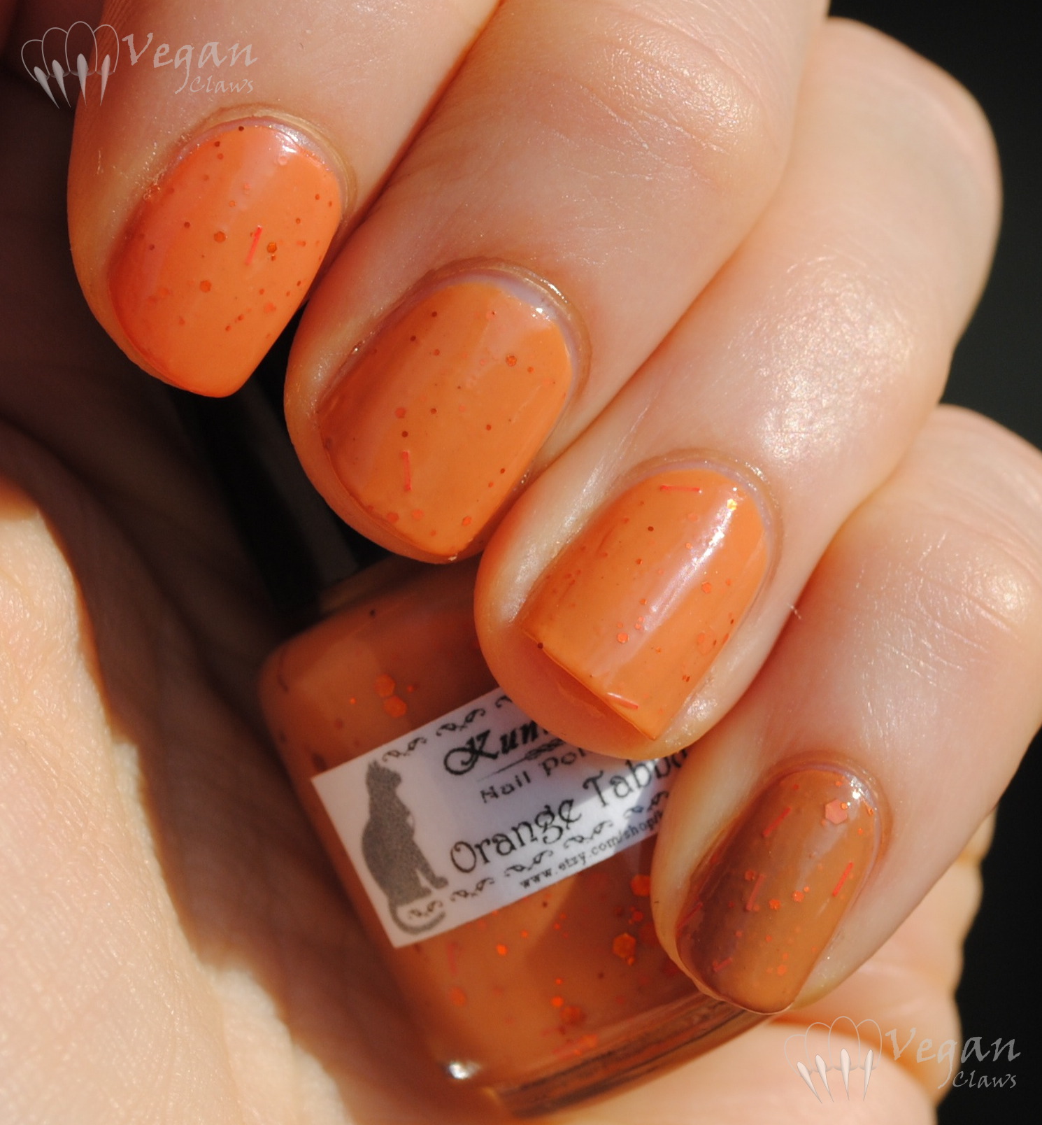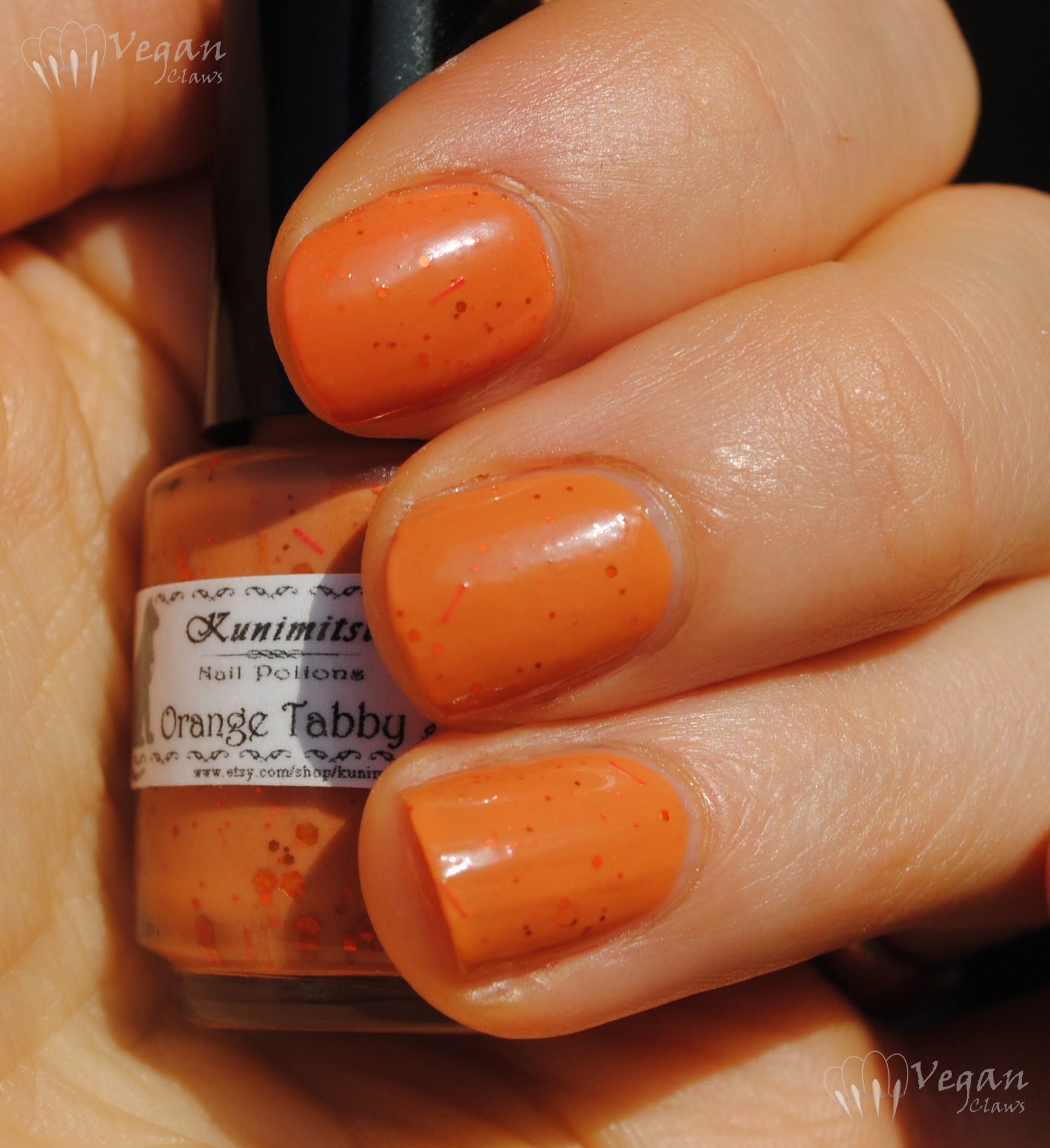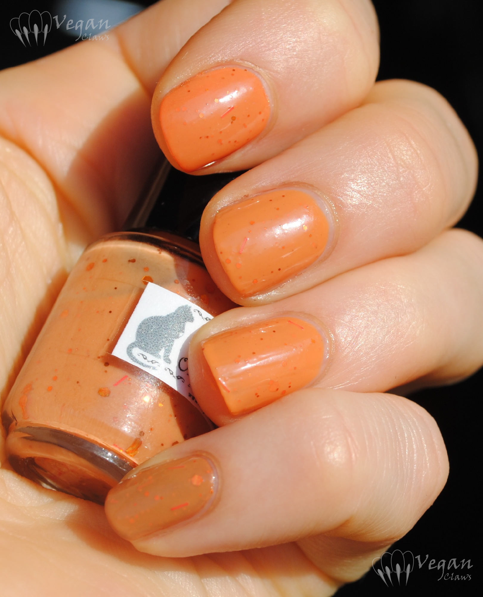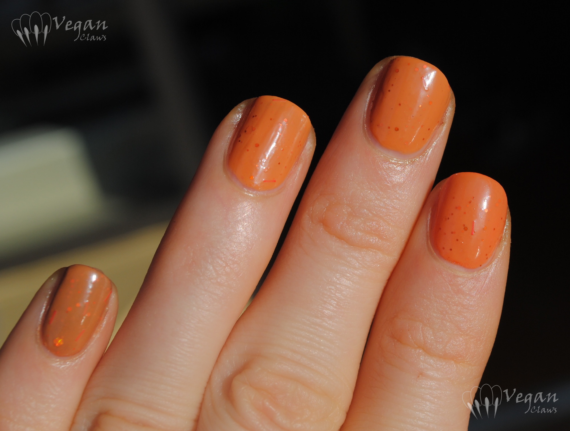 I did have to do some shaking between coats and searching with the brush to get the amount of glitter I wanted out of the bottle. Not a high price to pay for an adorable orange polish!