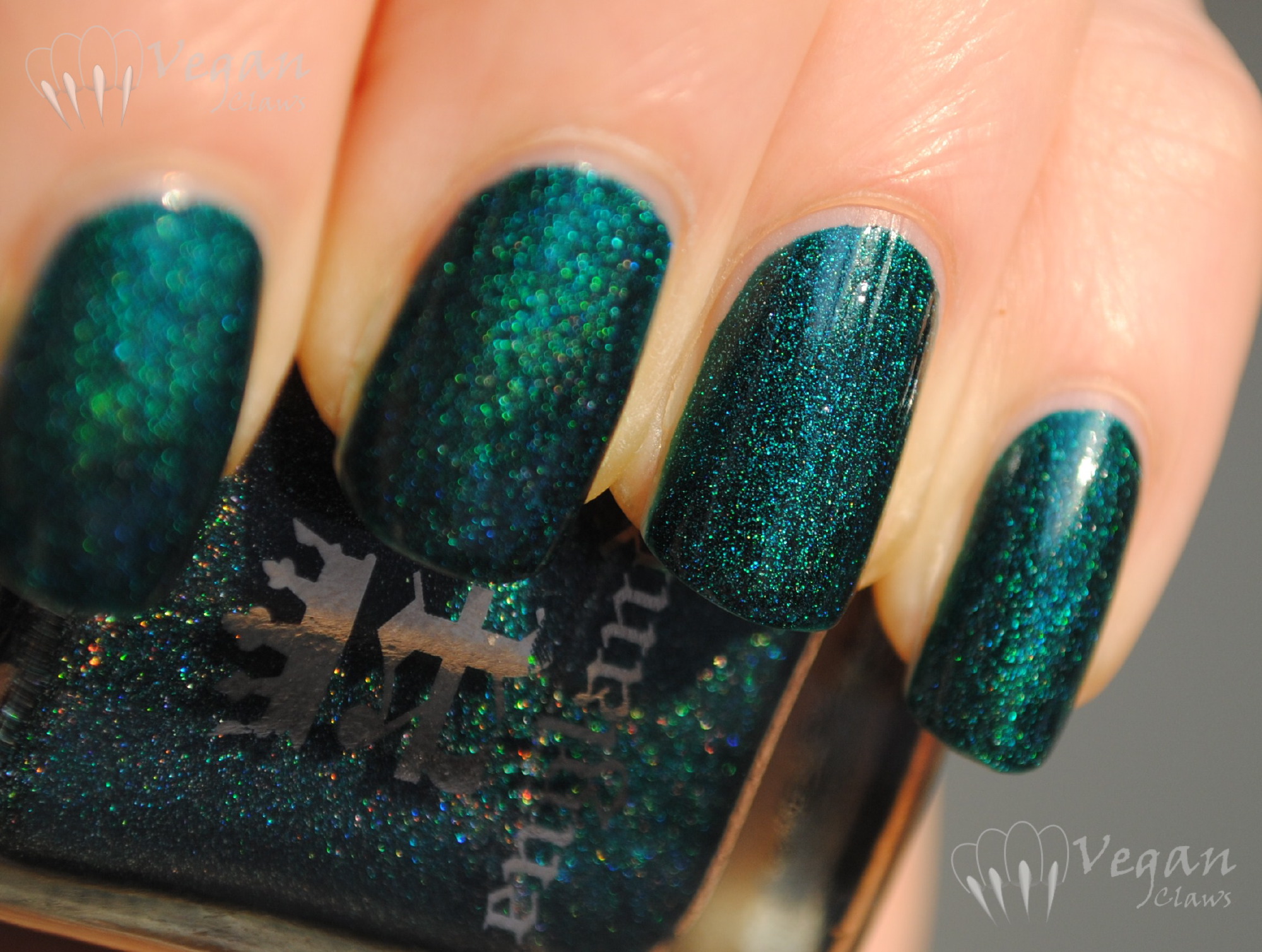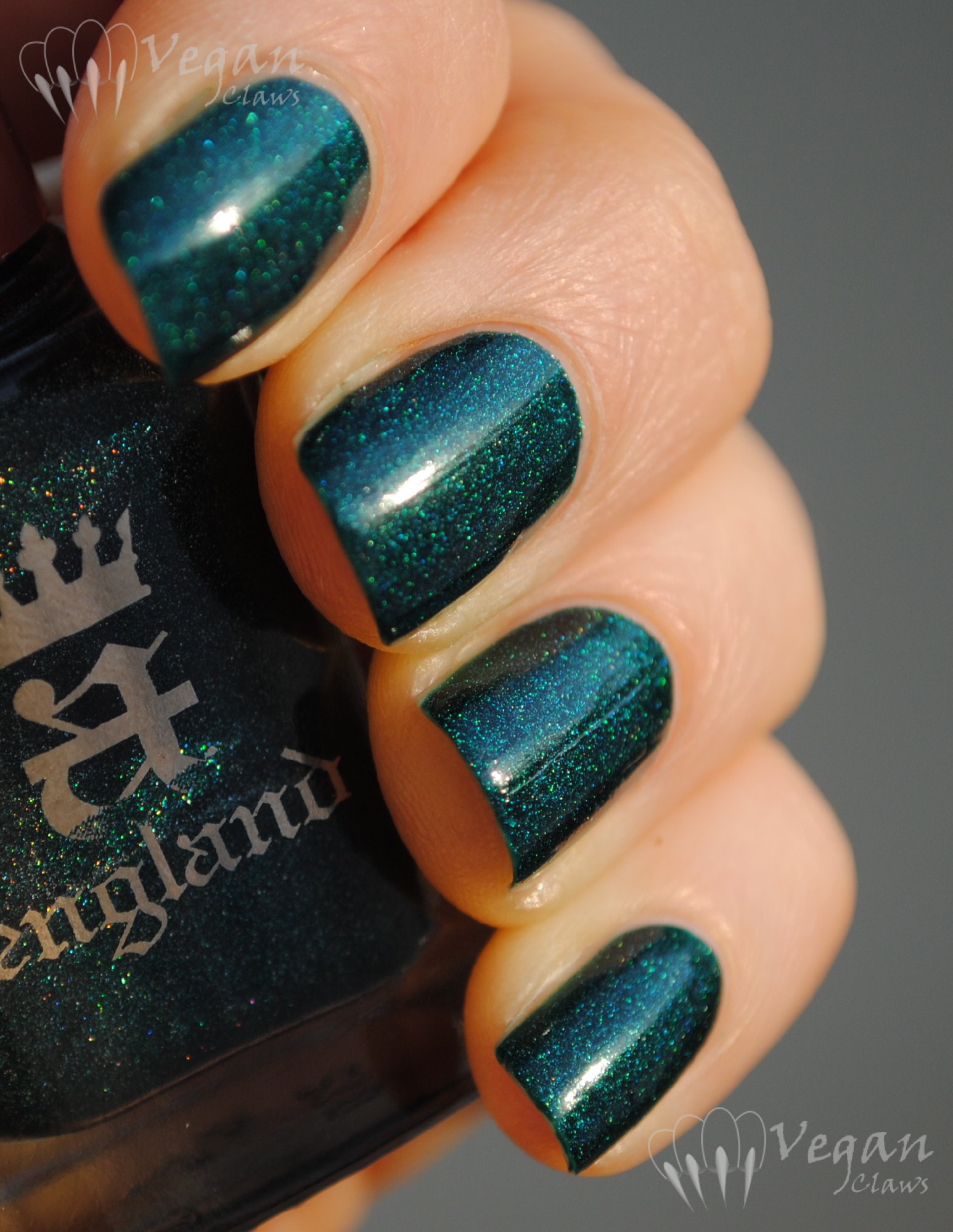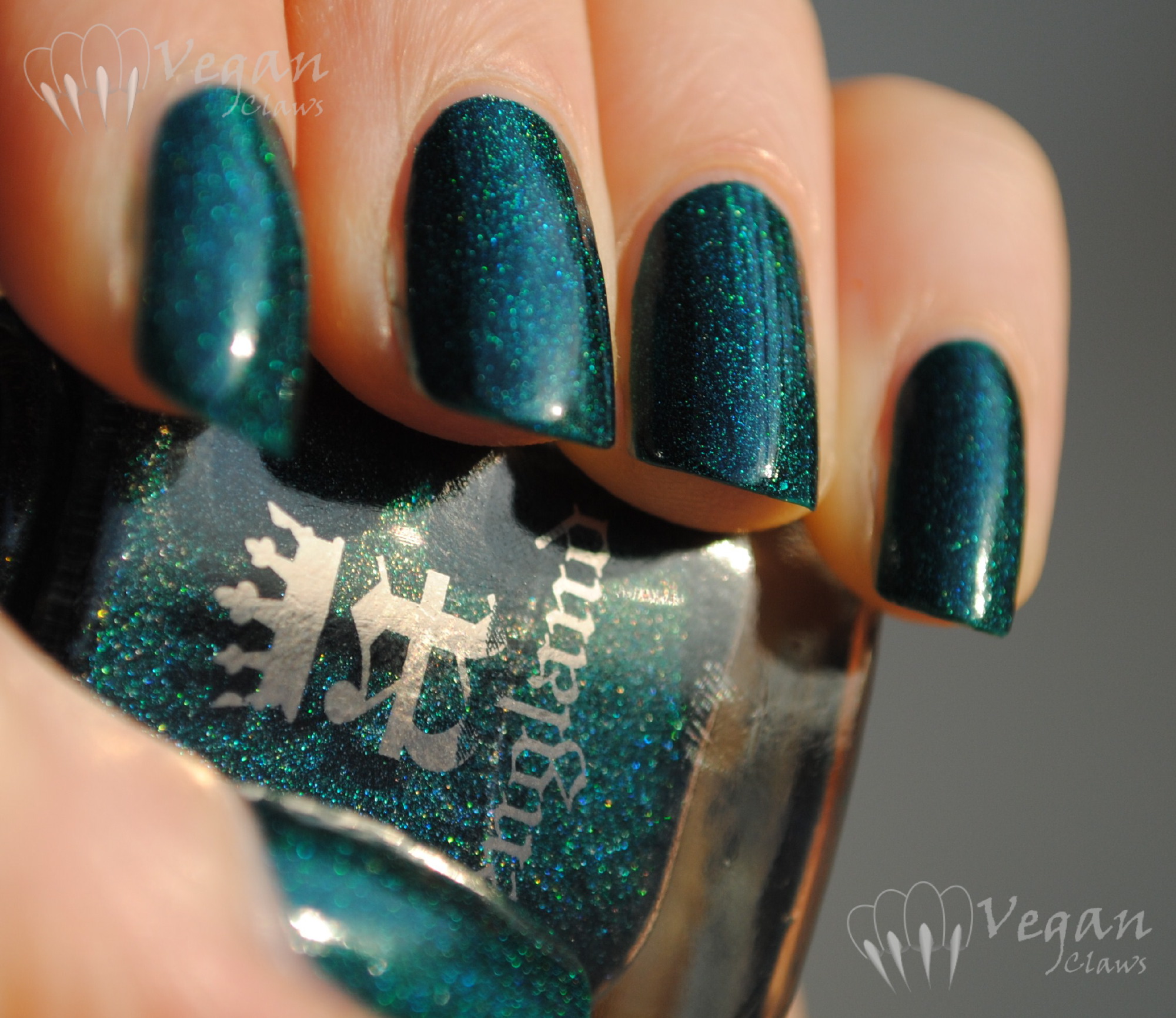 I had to add a fourth coat in the morning because silly me thought that since the polish was so shiny on its own I would leave it without topcoat and go to bed, and I woke up with sheet marks. So that’s four coats of Tail Feather underneath the stamping in the rest of the photos.