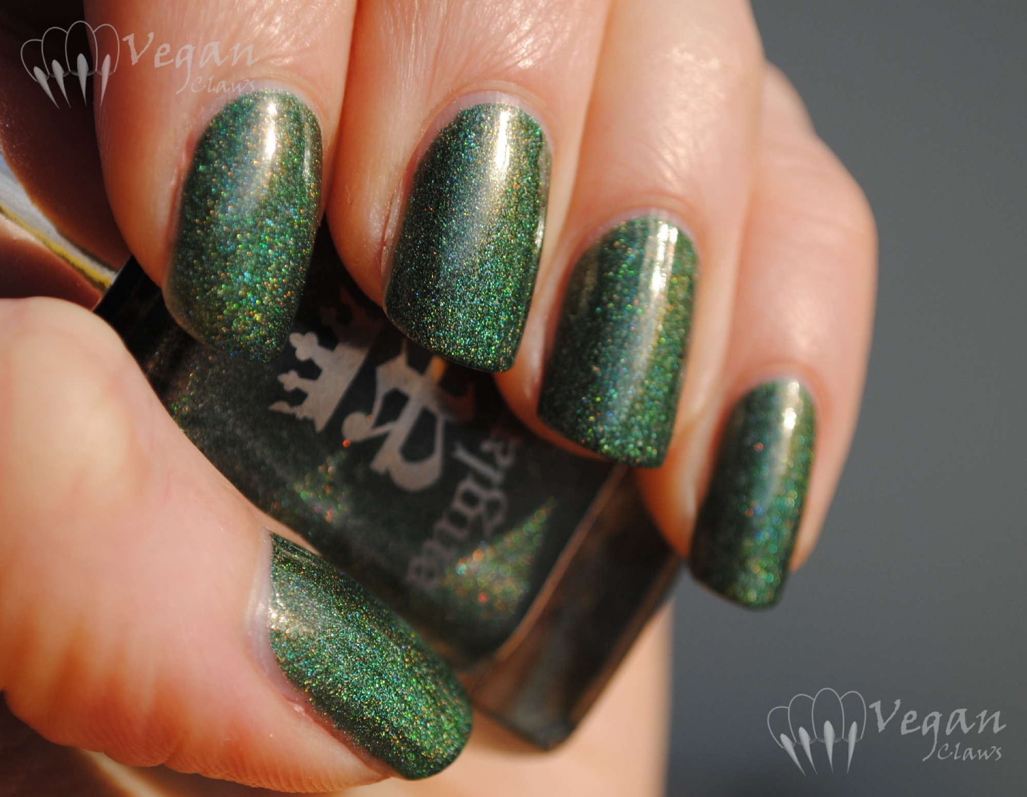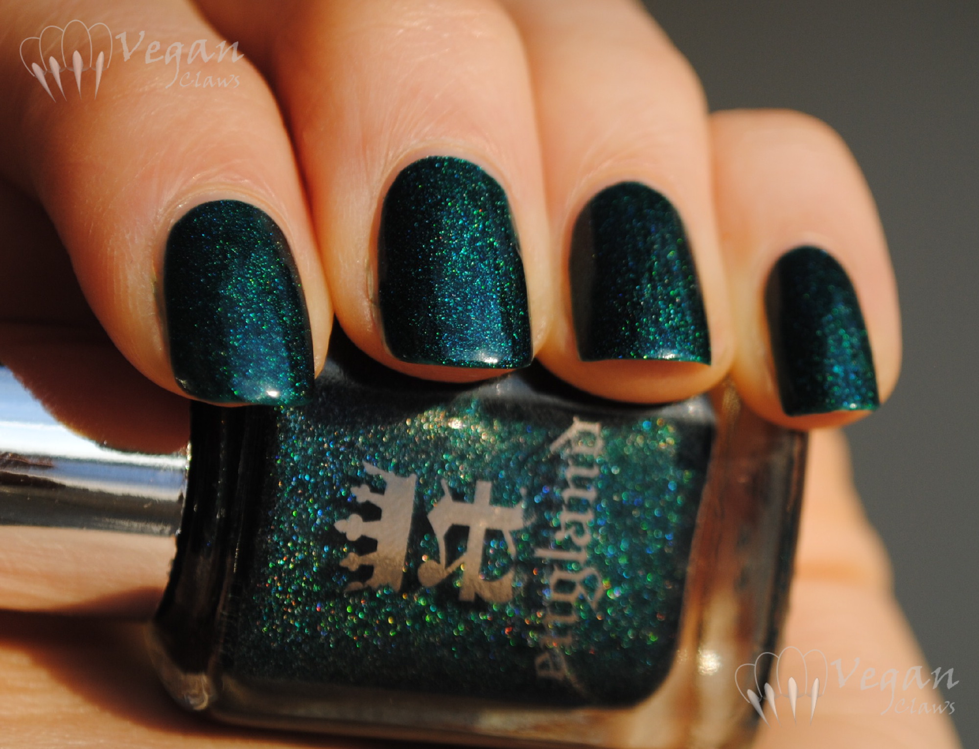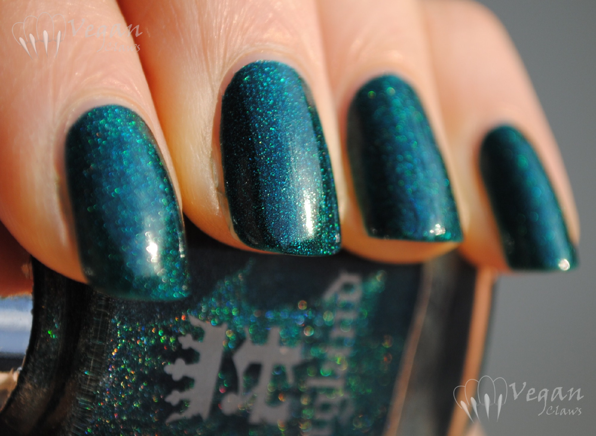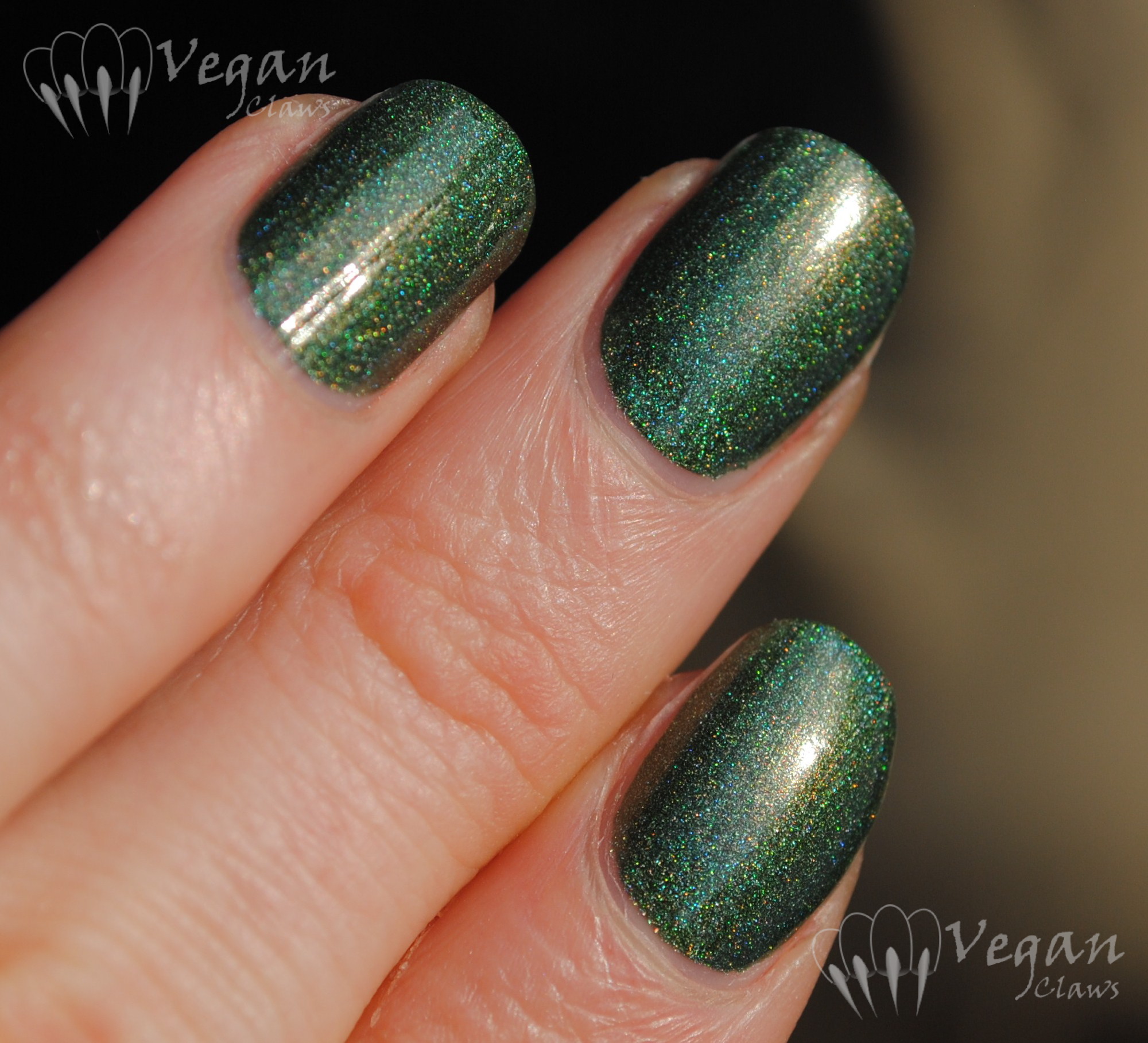 Tail Feather has a minty, slightly yellow leaning pastel green base with very subtle scattered holo and less subtle multi-coloured glass flecks. All photos with flash except the bottle shot.