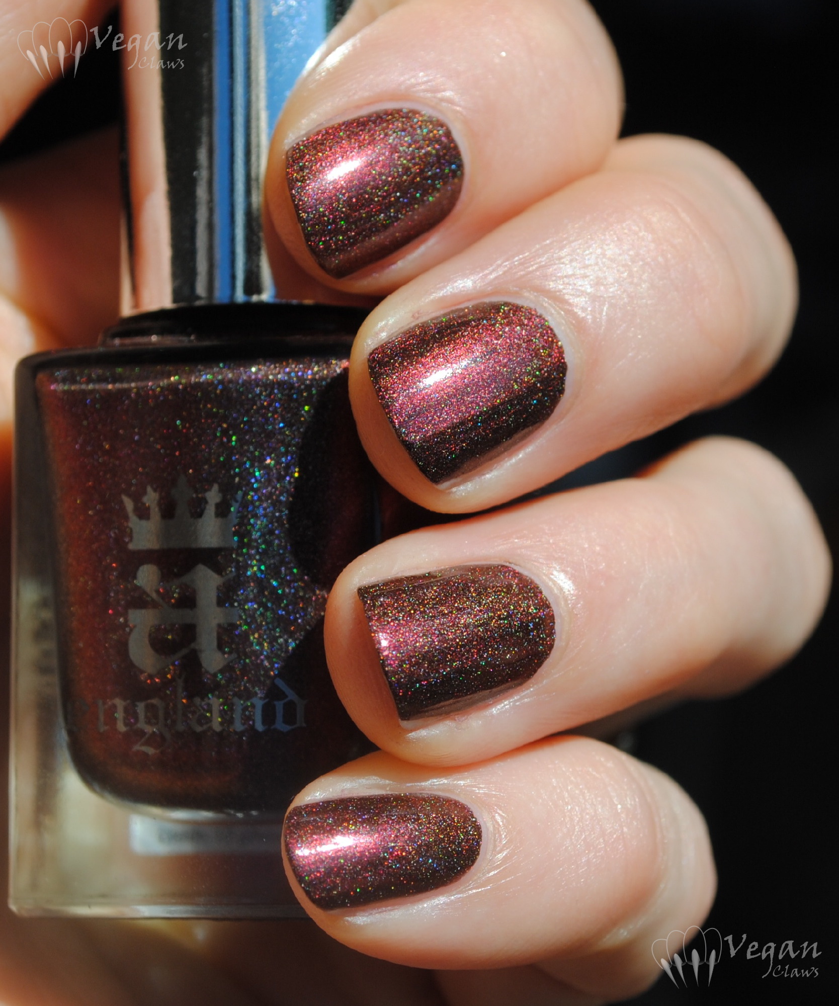 I stamped using a-England Dragon, and Bundle Monster plate BM-H05 which the folks at Nail Polish Canada sent me. Had some trouble with centring the design on my middle finger, ah well… I still like how it turned out! 🙂