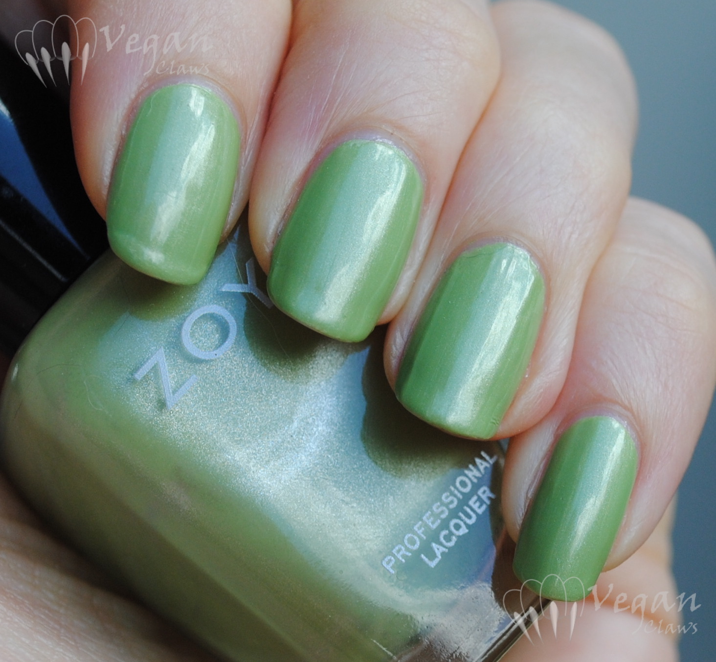 This is Zoya Tracie, two coats. I love this colour, soft yellow-toned green creme base with subtle pearly silver shimmer.