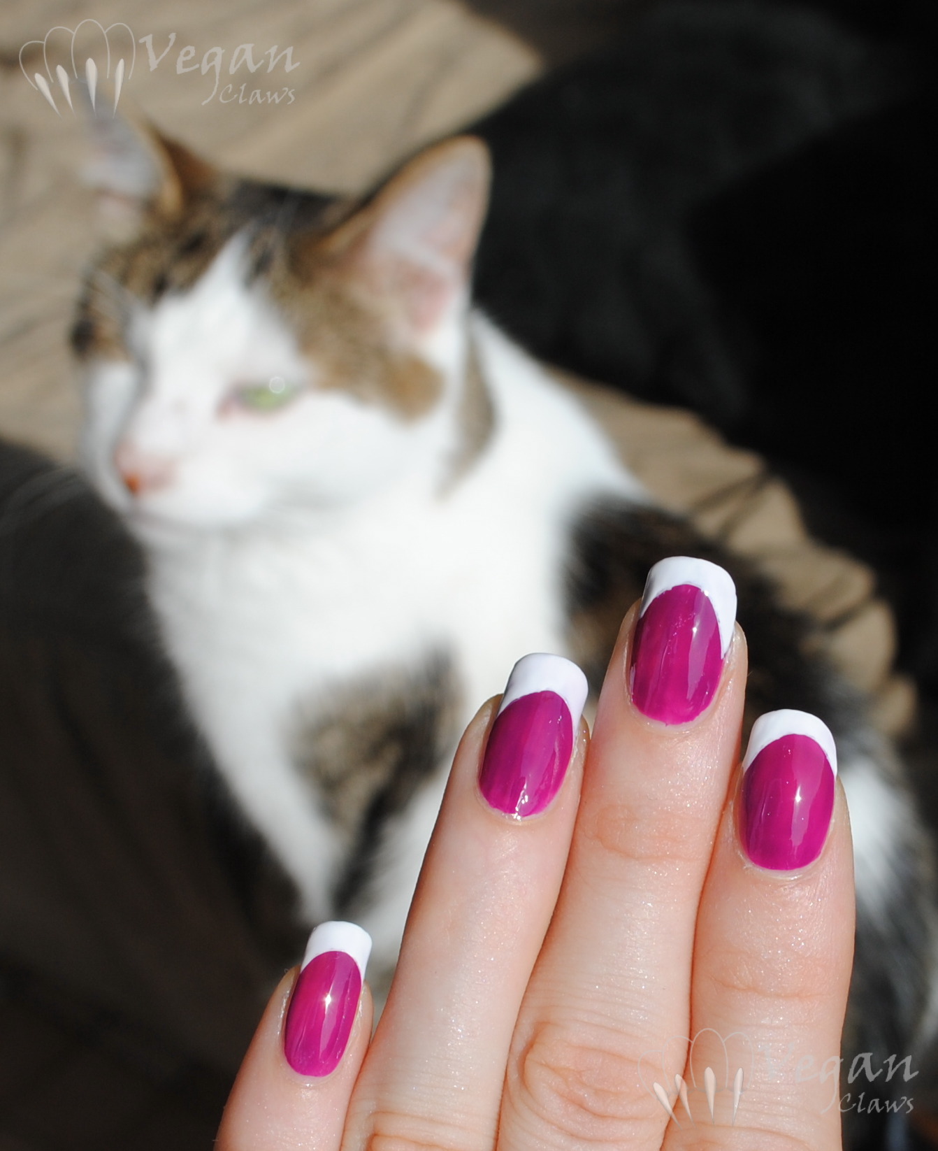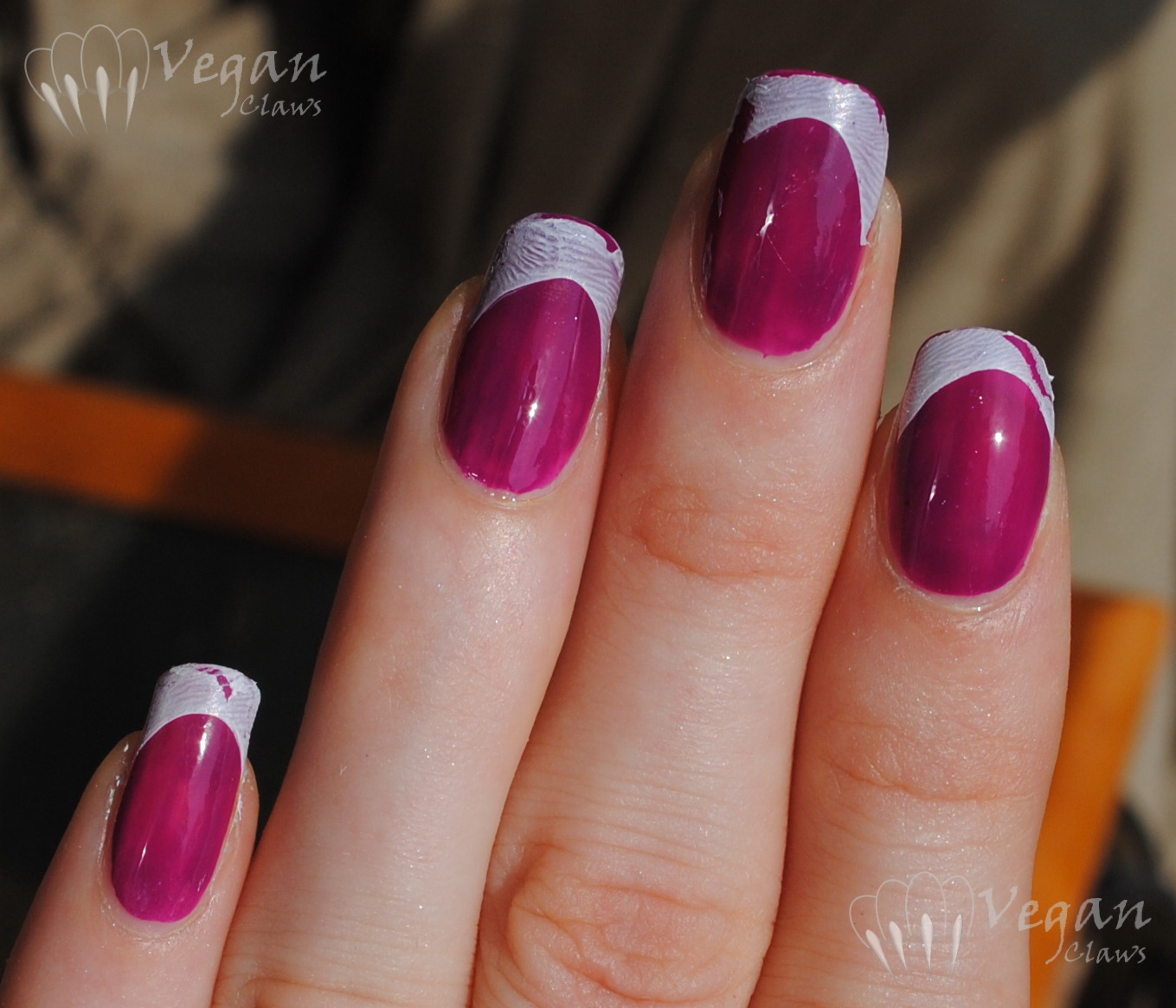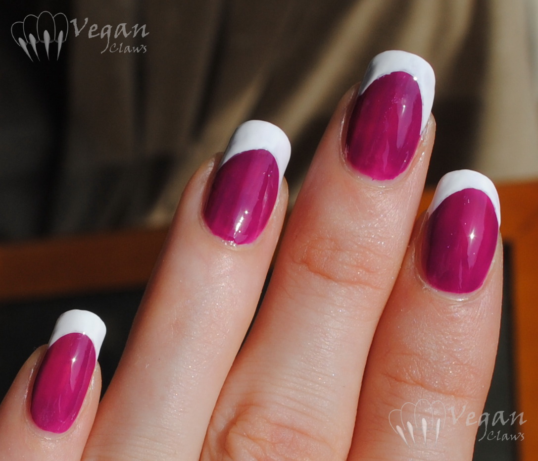 After stamping on the French tips I carefully went over them again with polish, just brushing it on, to fill them in and attempt to make them somewhat presentable. Here’s the result; all of them worked fine for this but the Milani did give the smoothest result. In terms of brushes, I should mention that the Fast Dry Milanis have a flat wide brush, similar to OPI and Kleancolor brushes. (Even the Kleancolor minis have a flat brush, though on a smaller scale. The other two polishes here have skinny round brushes.)