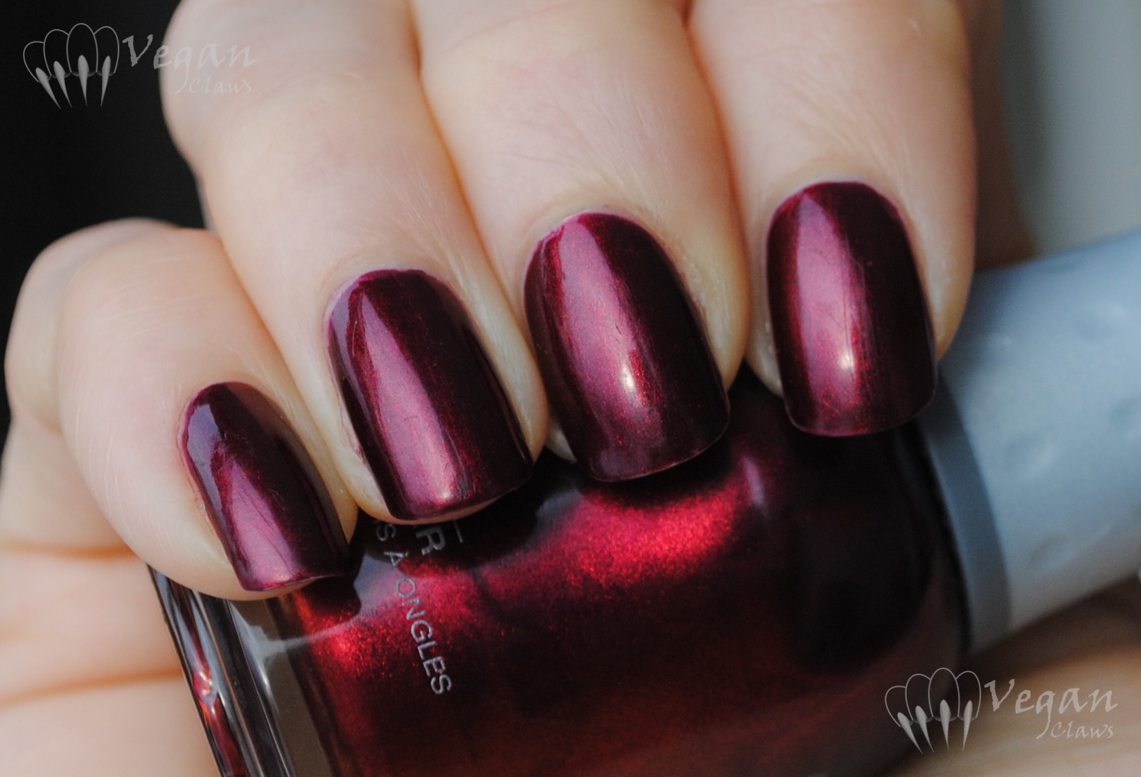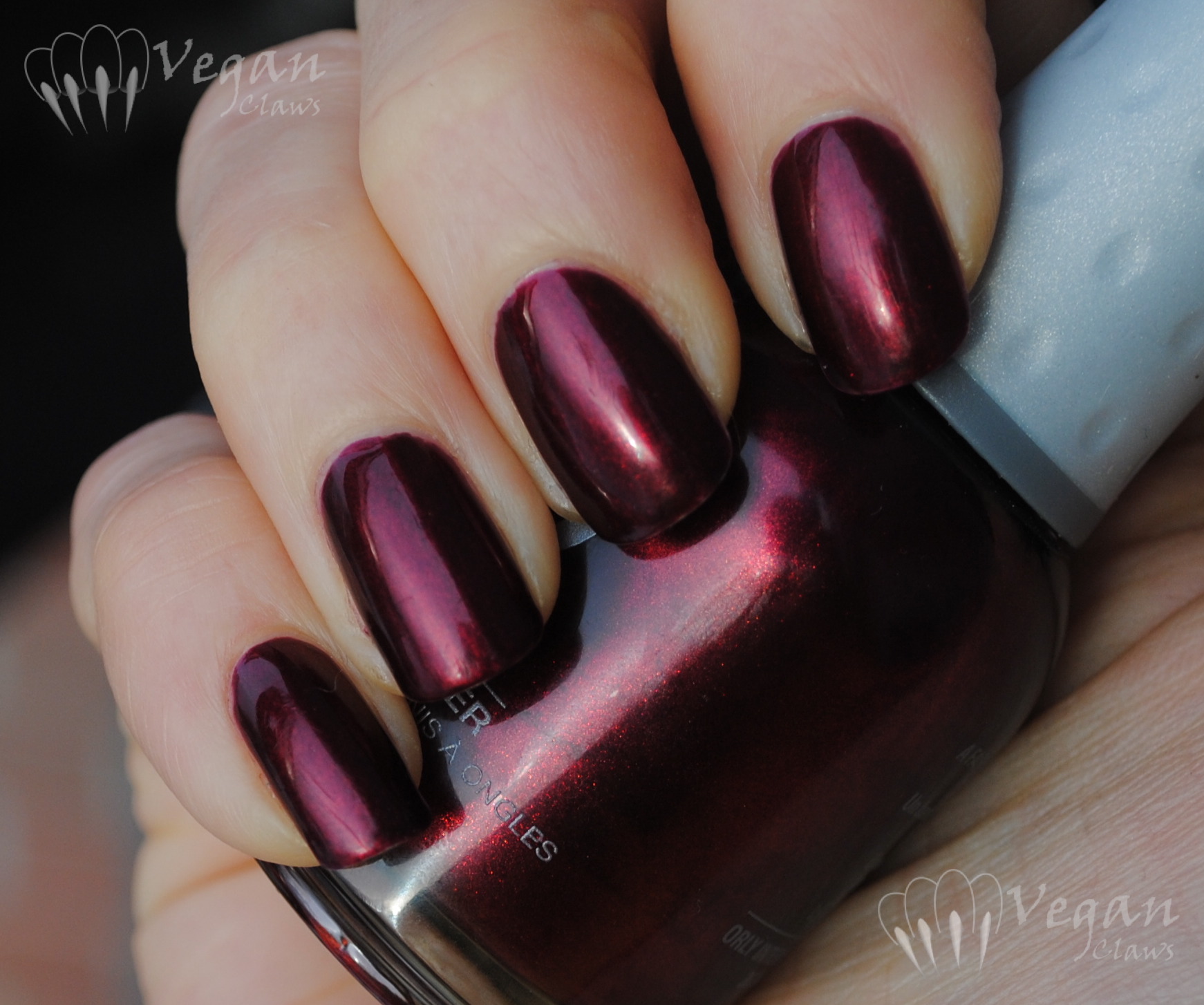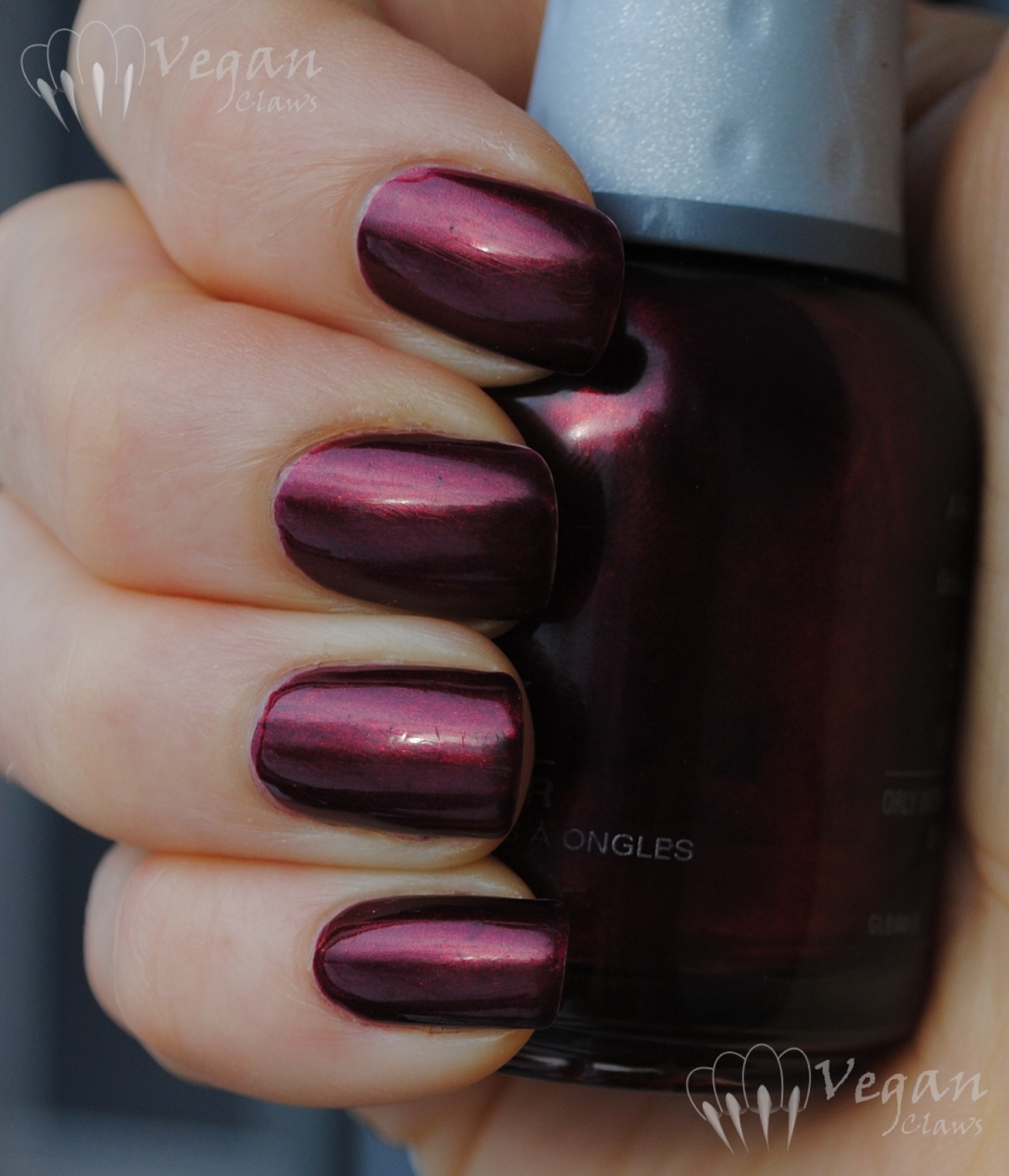 Its colour is somewhere in between burgundy and purple. I used two coats and no top coat for these photos.