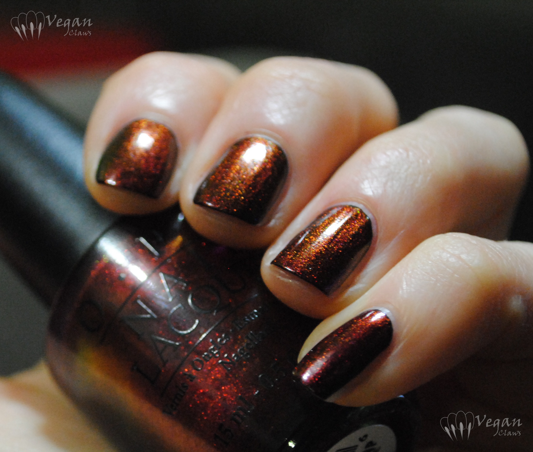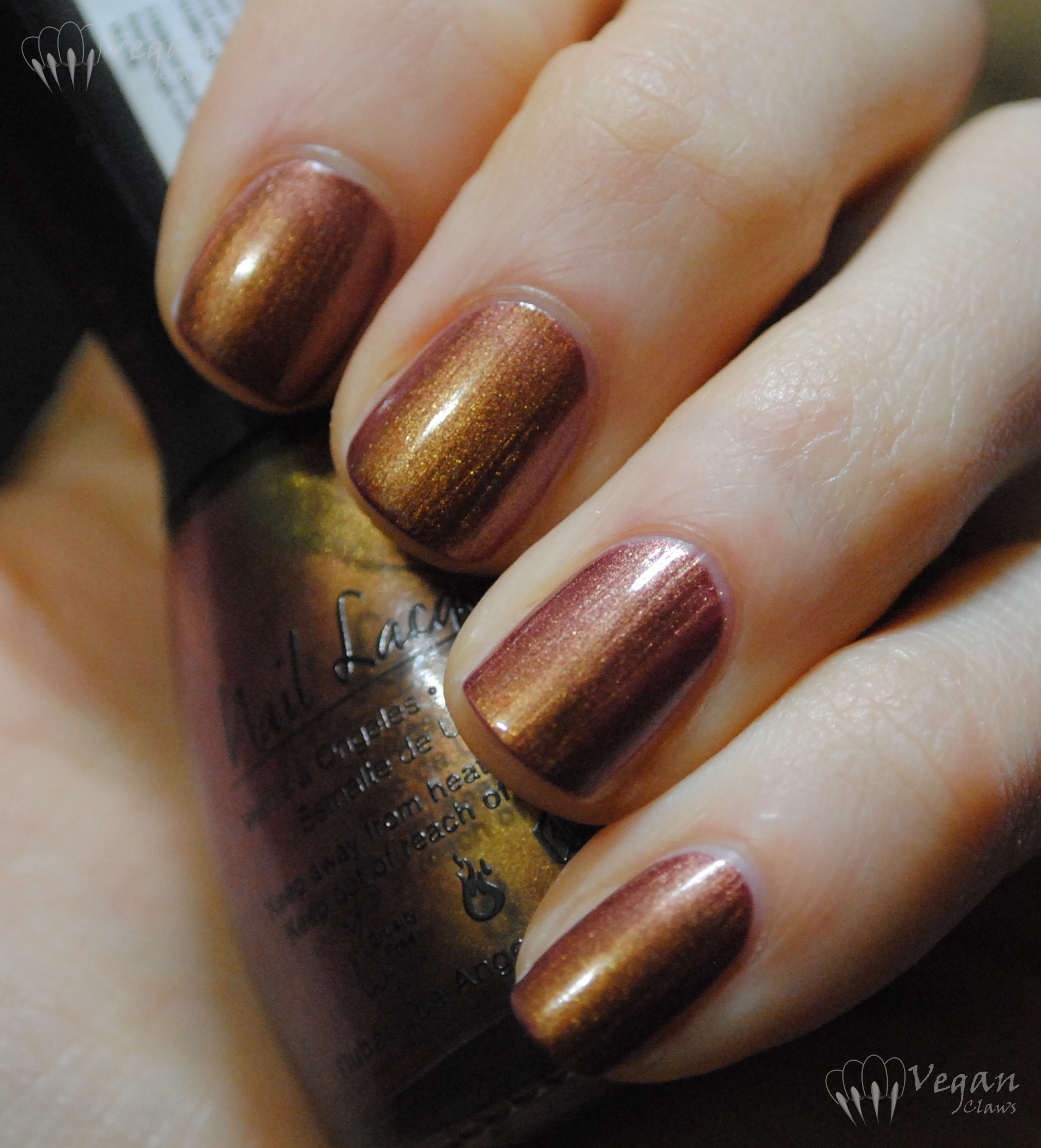 Gold Leaf is an awesome older golden-bronze/burgundy duochrome from Nubar. I think this was two coats. Various lighting, with and without flash.