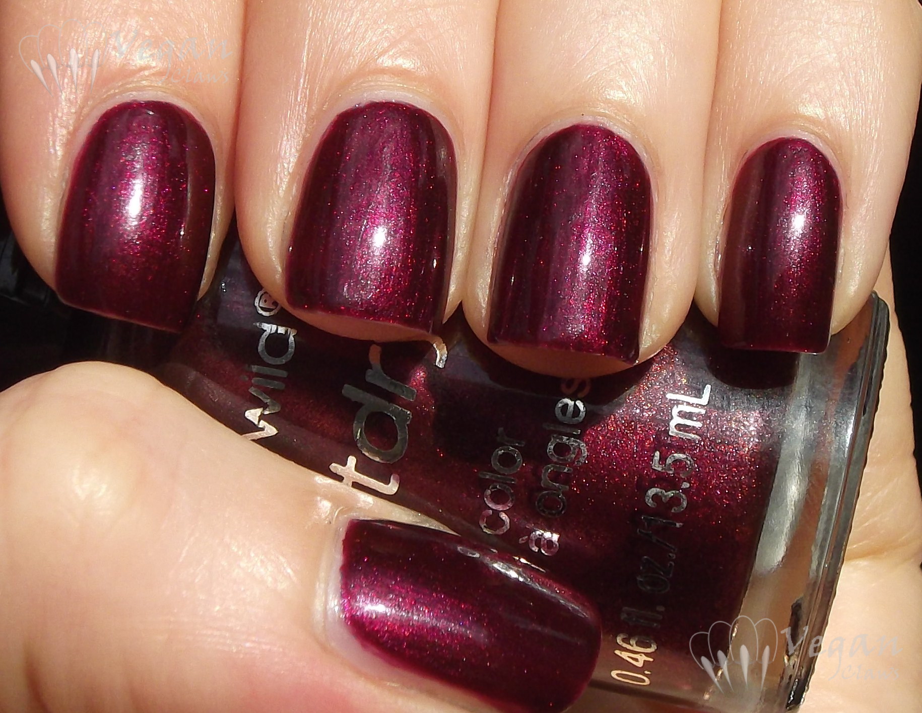 A gorgeous glowy shimmery plum burgundy. This is my favourite from the collection after Cougar Attack. Shown is three coats, no top coat (none of these photos have top coat).