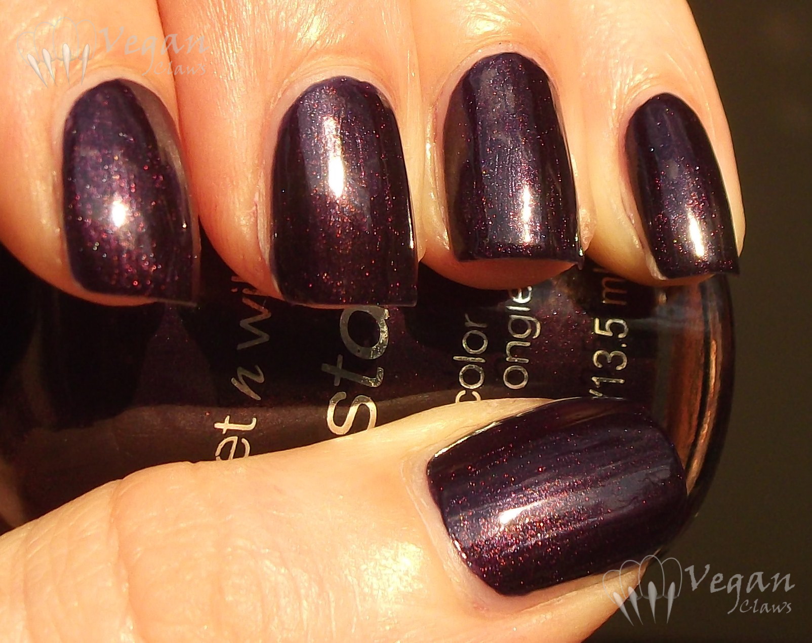 On Halloween I posted Wet n Wild’s Cougar Attack (an awesome brown jelly with orangey-copper glitter, shown again above) from their limited edition and annoyingly hard to find On the Prowl Halloween collection; here are the other polishes I got from the same collection.