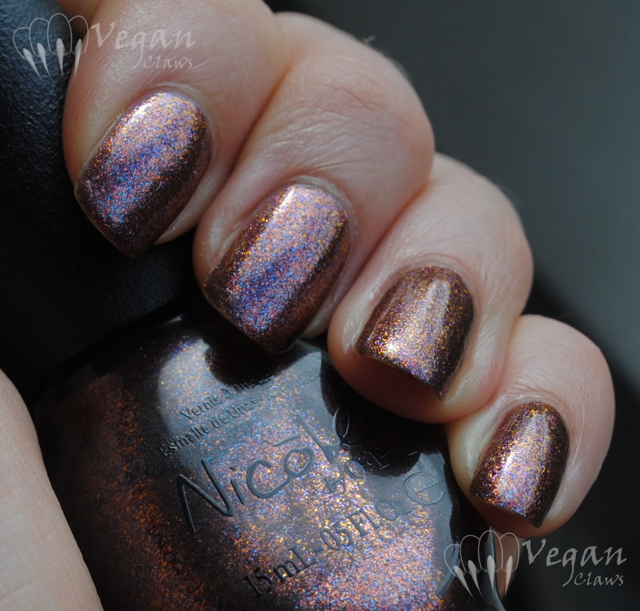 And now, some nail wheel comparisons of any and all polishes I had that were remotely similar! The first photo is indoors near my Ott light, the second in direct sun; neither is that great lighting-wise but I hope each can make up for the other’s deficiencies in showing the colours! Kimber and Rory are directly across from one another at the point where the two wheels are closest to each other.
