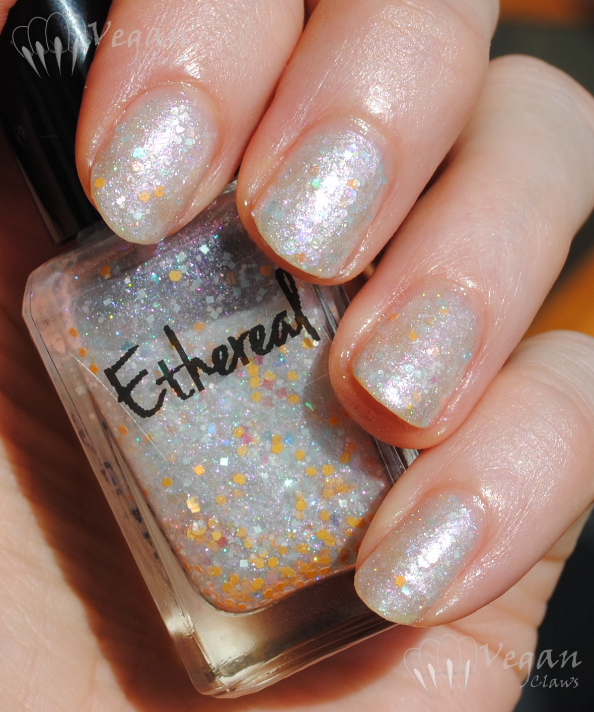 Here is a bottle picture of the lovely polish named for Ethereal. I love the matte peach glitters in this one, they make it so very unique.
