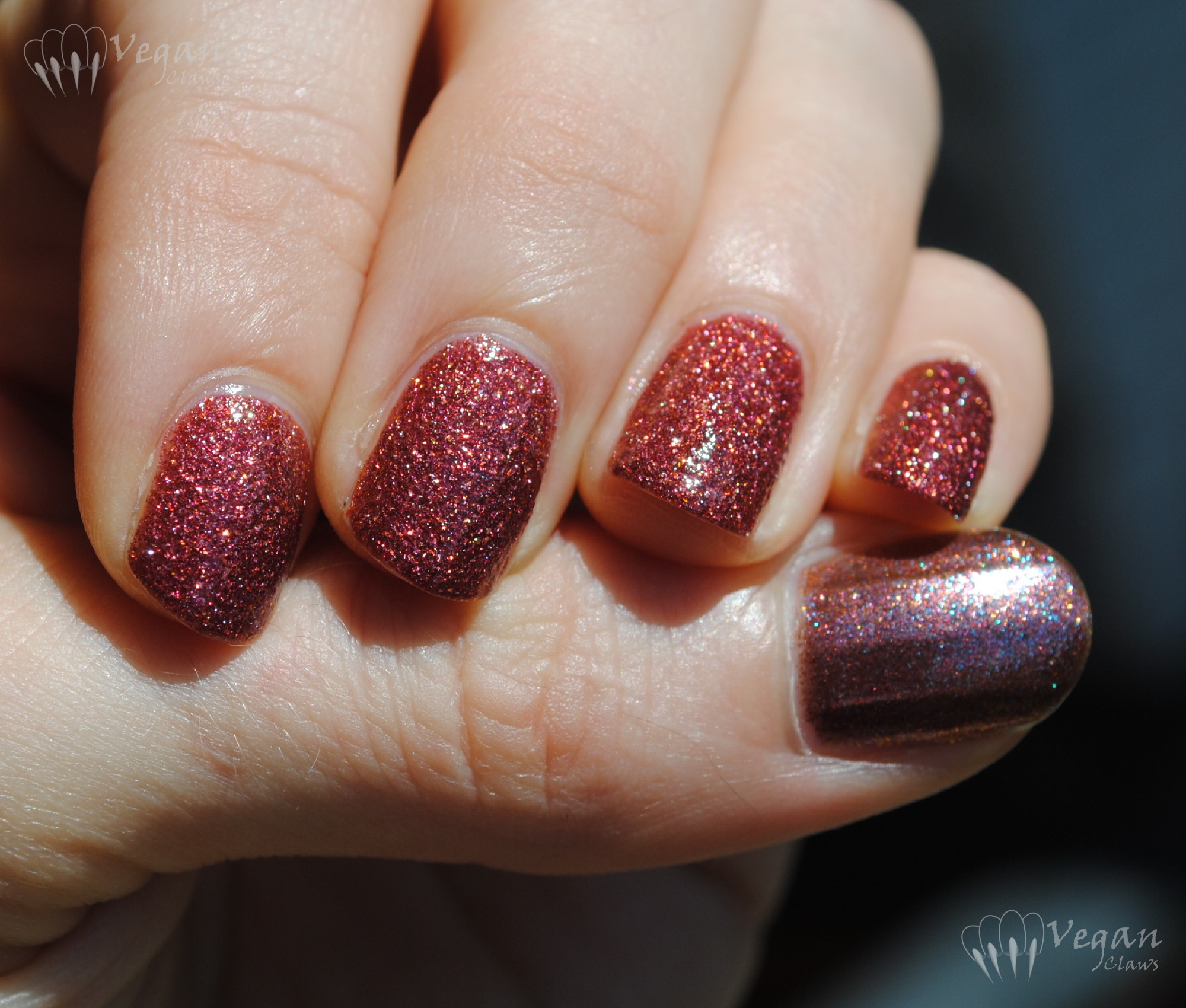 One coat over black, in overcast natural light. It doesn’t really look much different over black, just, well, darker.