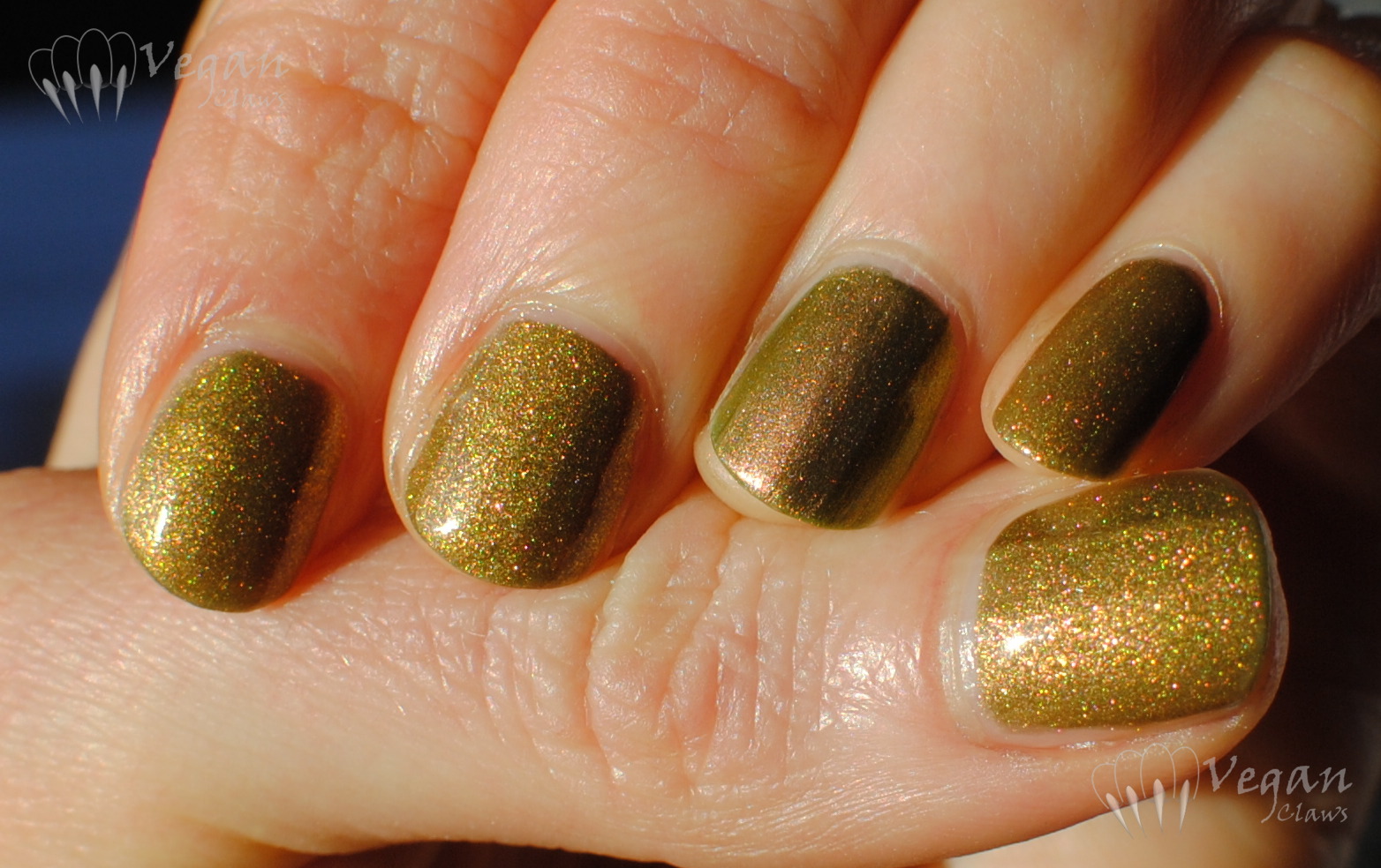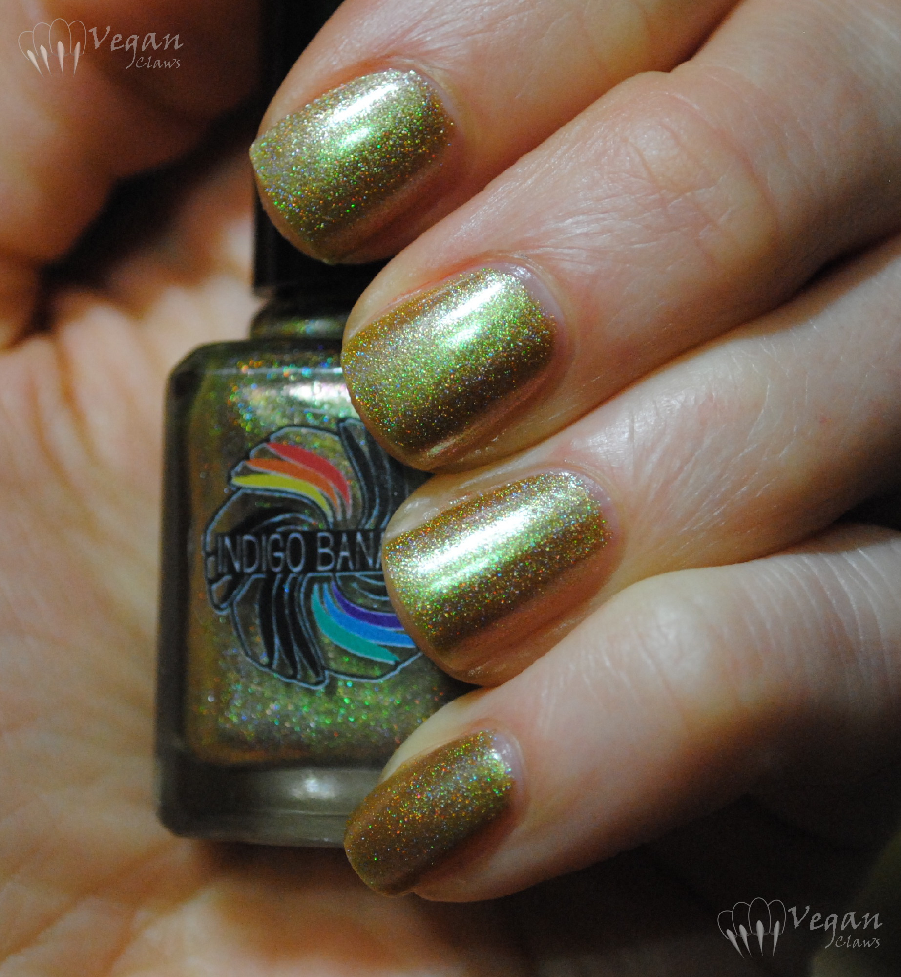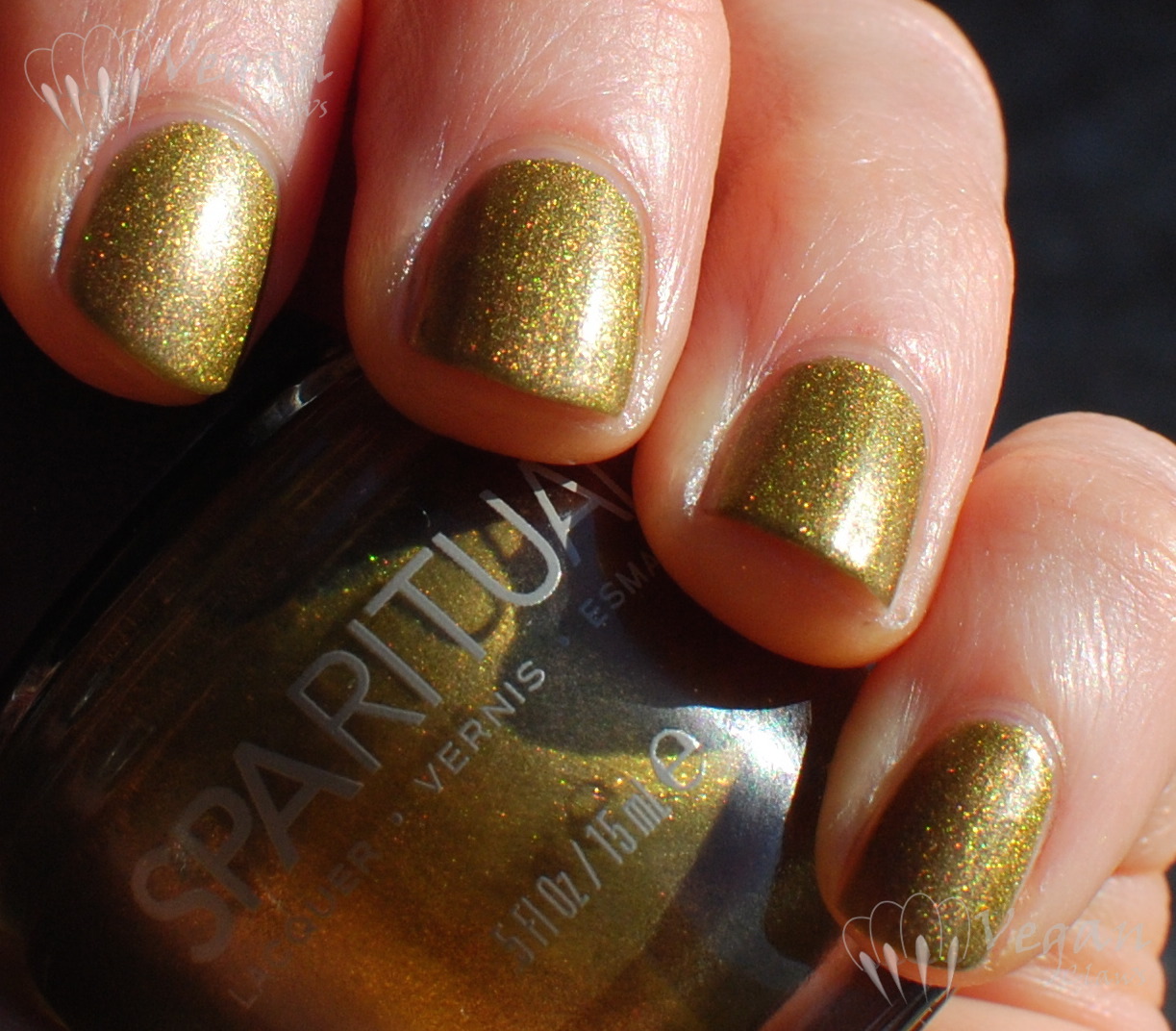 Today I have two polishes with “time” in the name to show you. Pretty and Polished Thyme and Time Again is from the dusty creme collection which all have tiny grey speckles throughout. Indigo Bananas Olive Time and Space is a dark olive green from their Fall 2015 holo collection.
