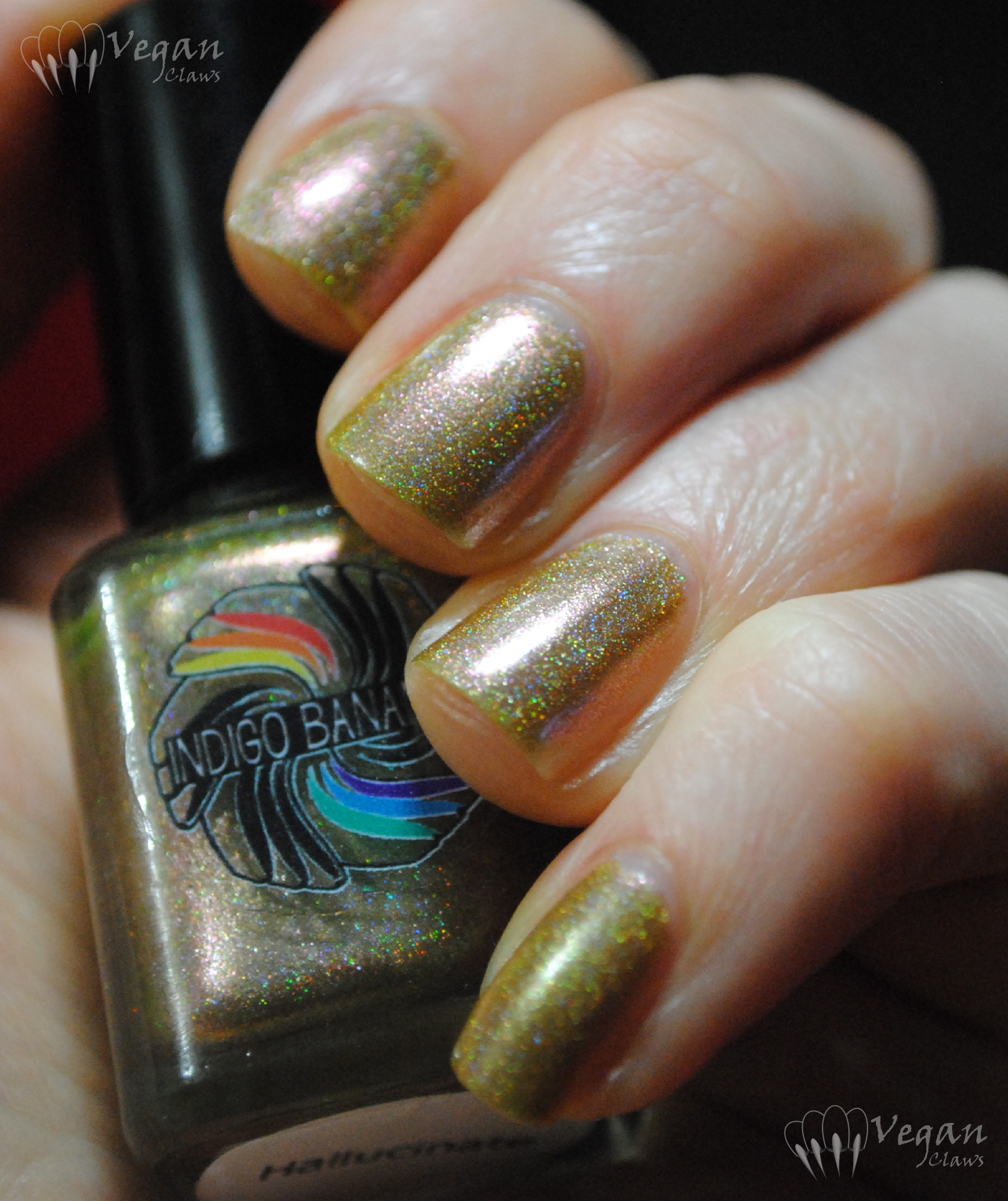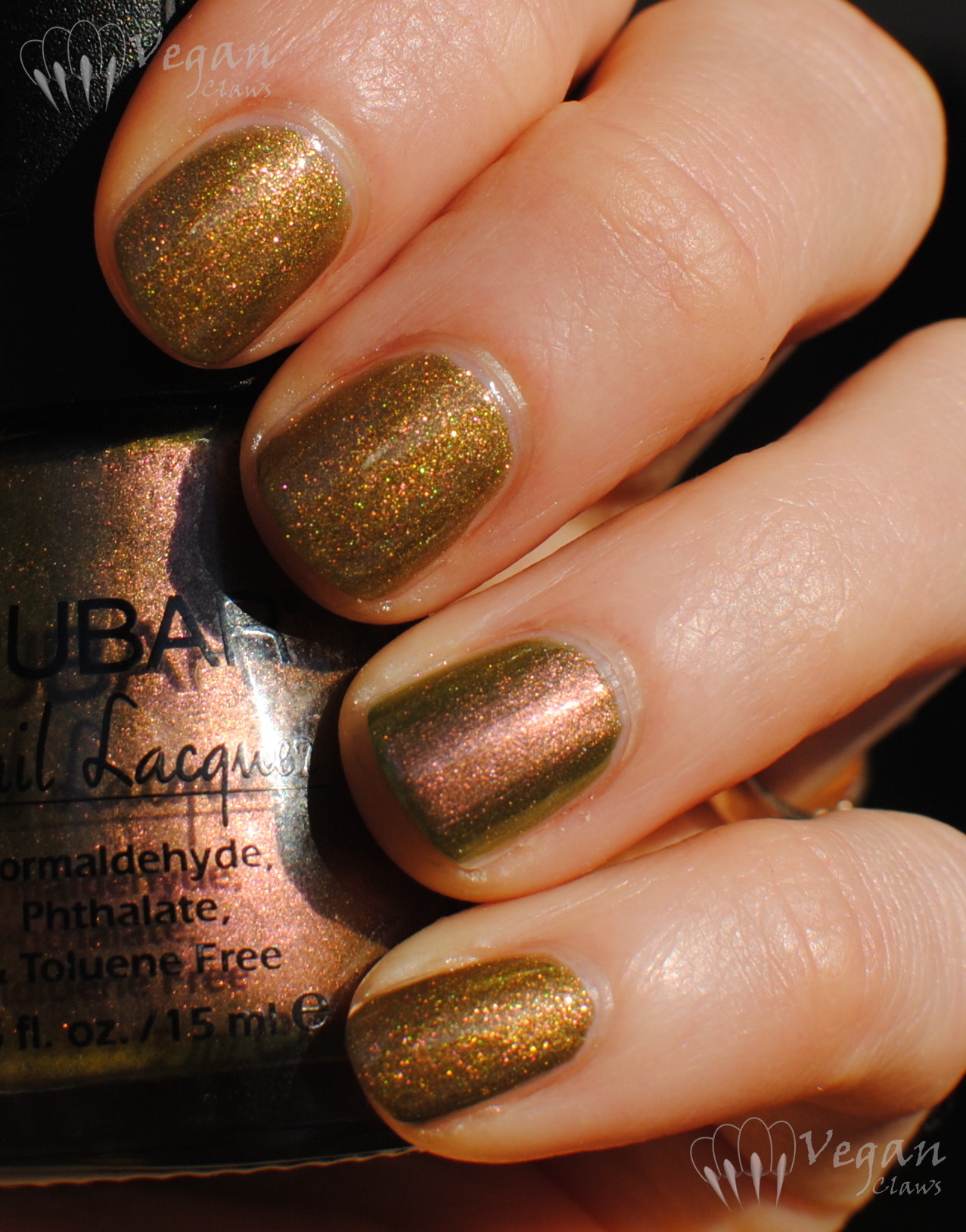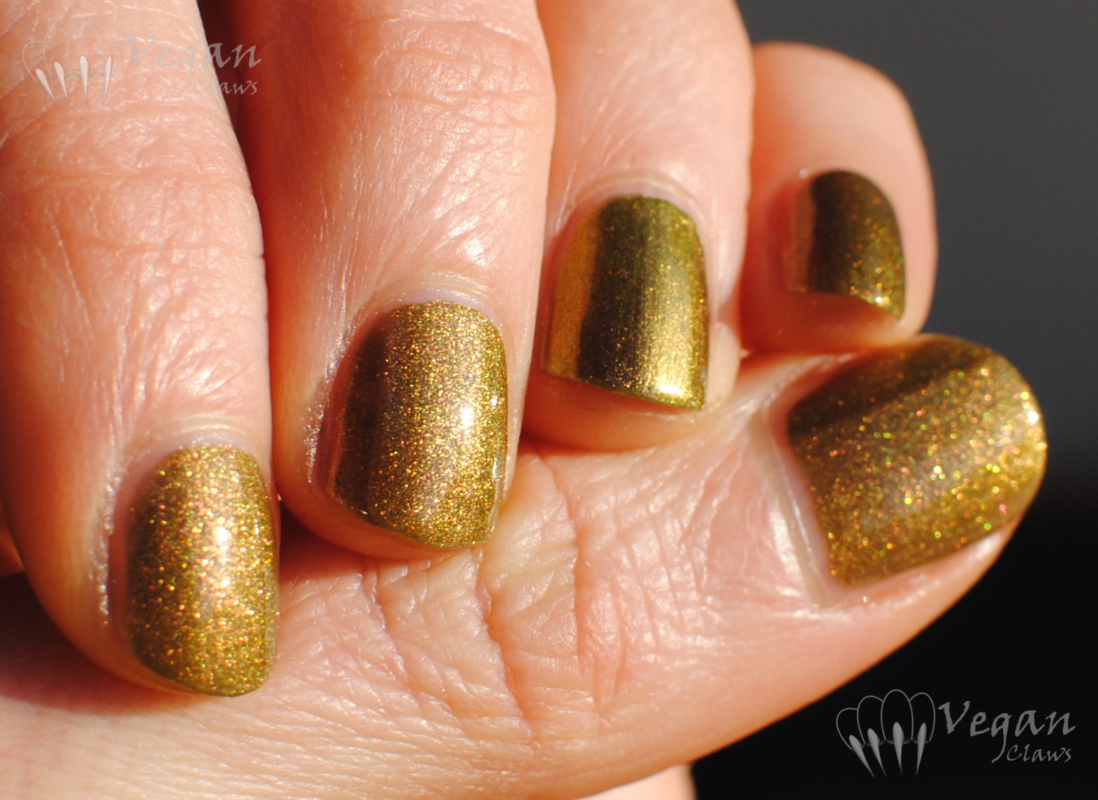Today I have two polishes with “time” in the name to show you. Pretty and Polished Thyme and Time Again is from the dusty creme collection which all have tiny grey speckles throughout. Indigo Bananas Olive Time and Space is a dark olive green from their Fall 2015 holo collection.