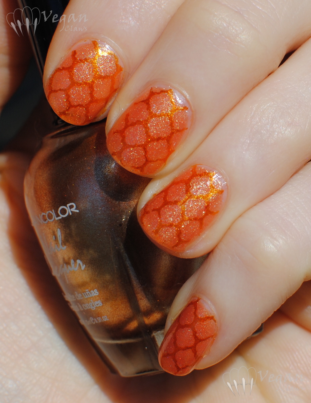 I stamped over it using Kleancolor Metallic Mango and a pattern from Messy Mansion plate MM-13. I really like how it turned out!